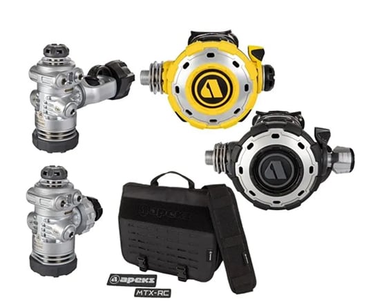 The Apeks MTX-RC Stage 3 is a complete scuba diving regulator set, including a primary and an octopus (second stage), designed for high performance and reliability in cold, deep, and technical dive environments.