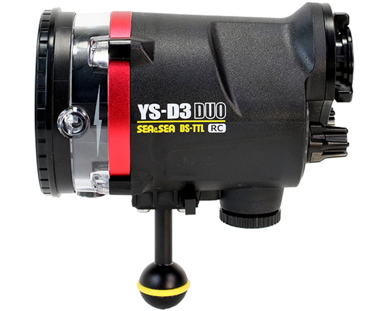 The YS-D3 DUO is a high-specification underwater strobe with three shooting modes: DS-TTL, RC mode, and manual. Custom settings allow the strobe to be used with high precision with a variety of cameras and shooting styles.
